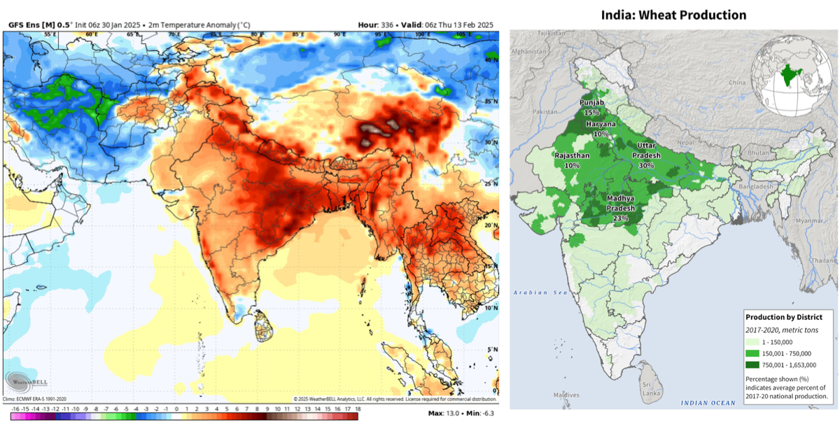 The weather bureau in India said they will likely be seeing above avg temps for the month of February.