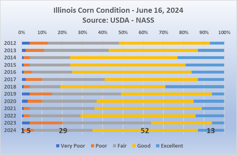 Illinois corn about on par with 2020 and 2021. Worse than 2022 but far better than 2023.