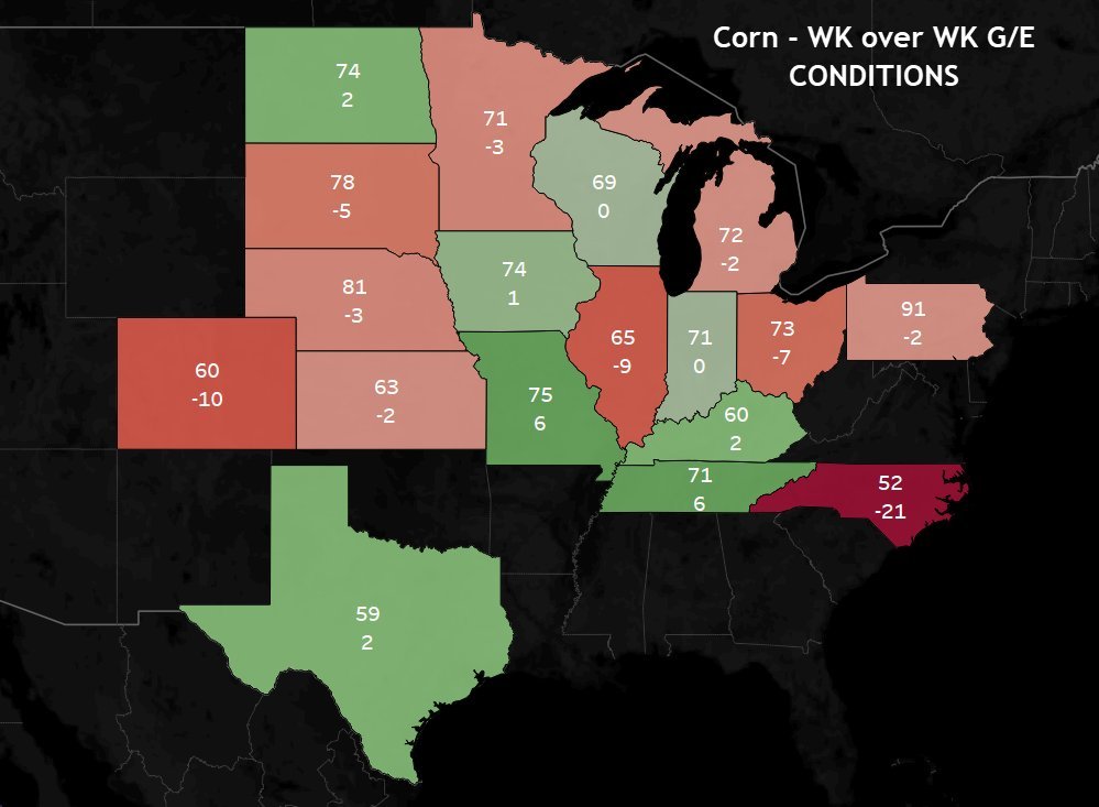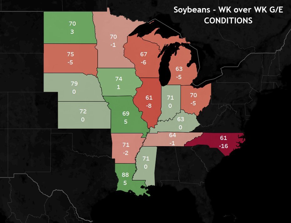 The big drop this week was Illinois. The #2 corn and #1 bean state.