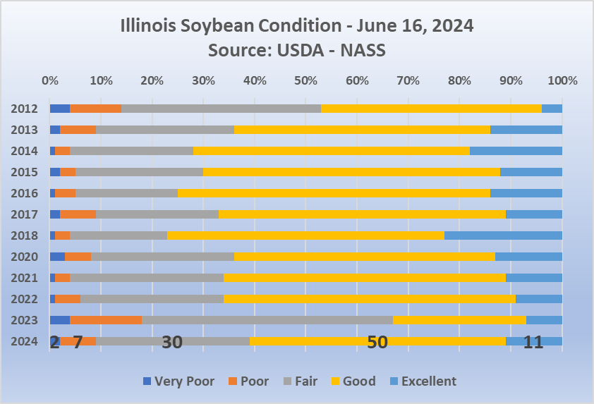 Illinois beans, aside from last year are the worst since 2012.