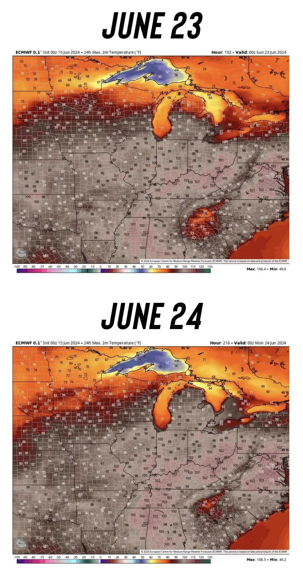 "Right back to excessive heat by July 1st. I think July 5th to 15th could be record heat for the grain belt with risks for several 100+ degree high temp days."