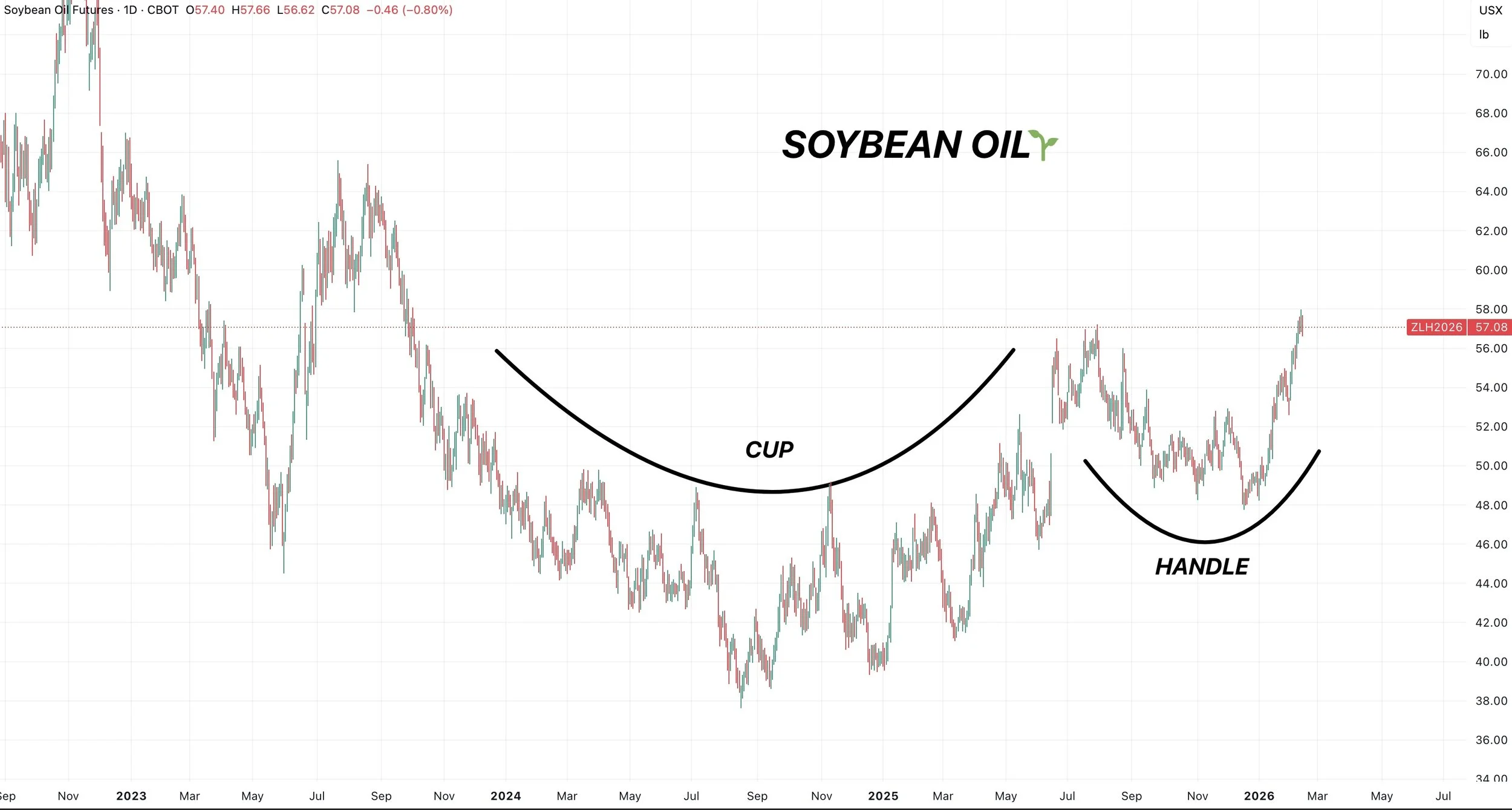 We've got a potential cup and handle pattern which is viewed as bullish.