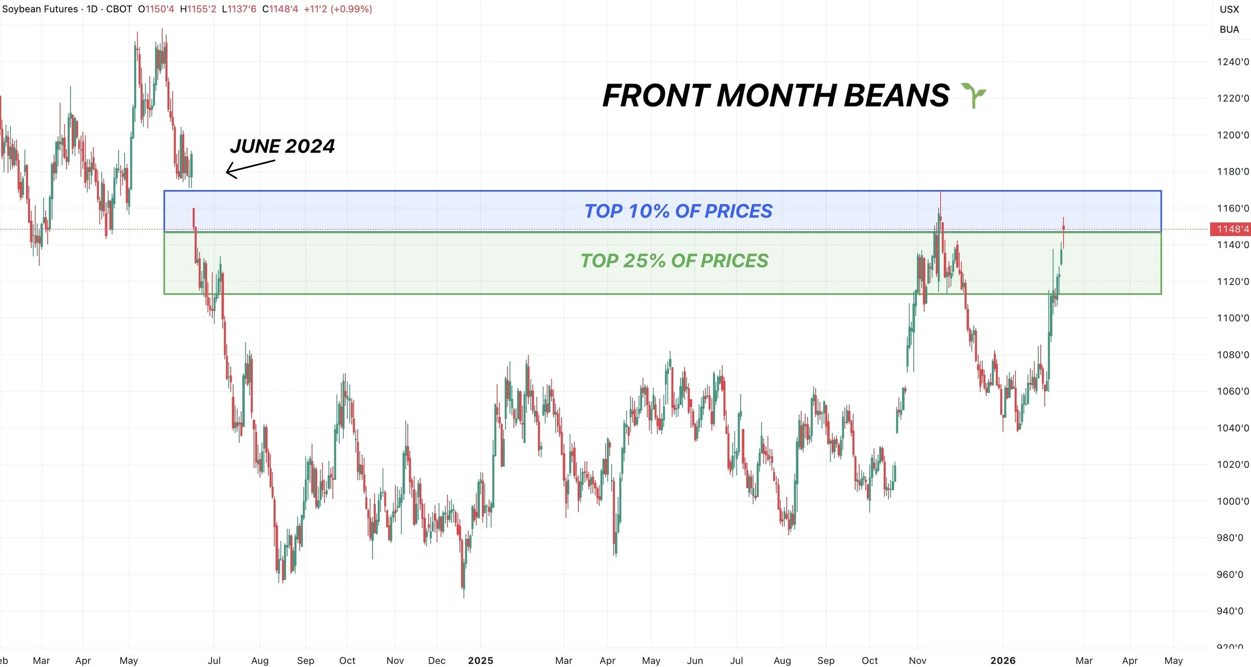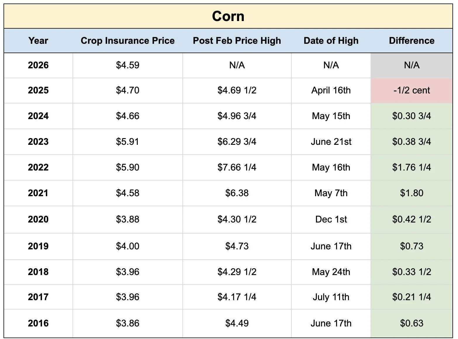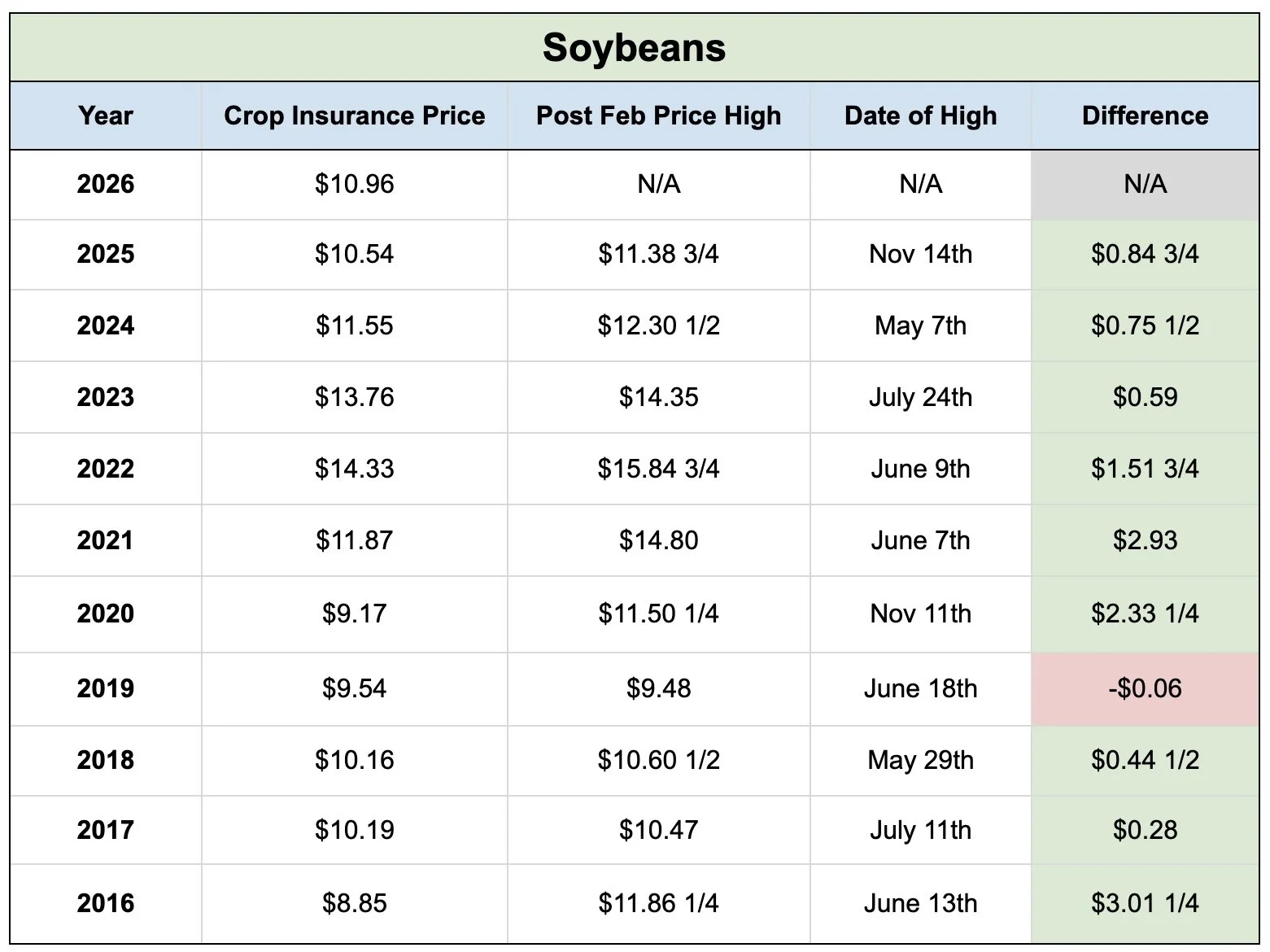 So more often than not, both corn and beans usually do revist those prices we set in February.