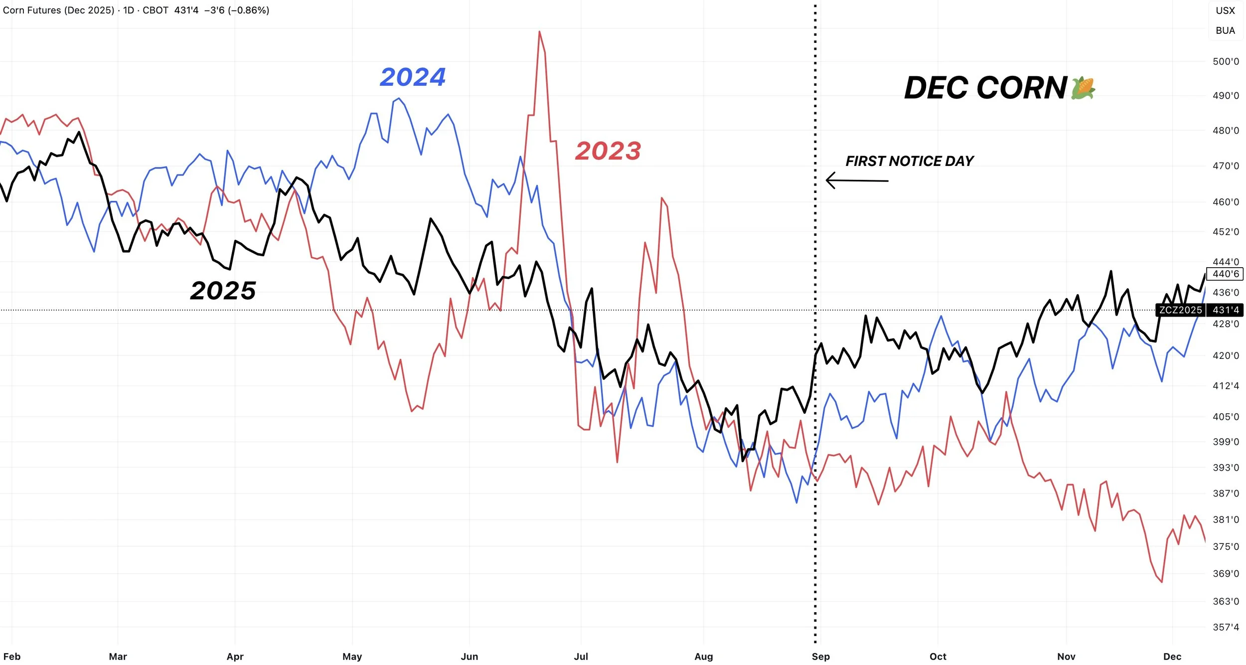 The last 3 years in a row, this market found a bottom right around first notice day following that sell off heading into harvest.