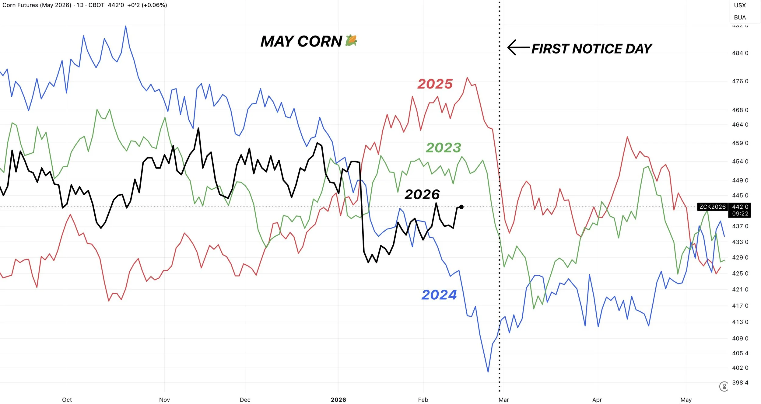 I've went over the data and how corn has traded lower the last two weeks of February the last 9 of 11 years.