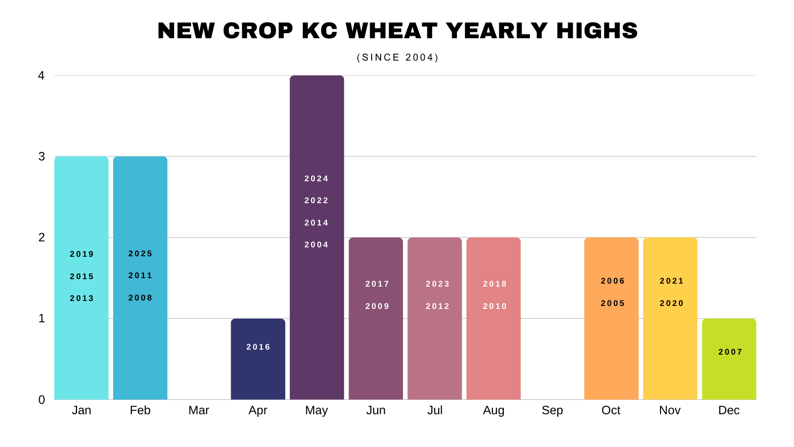 May slightly edges out January and February. As there have been several years where the wheat market simply trickled lower the entire year