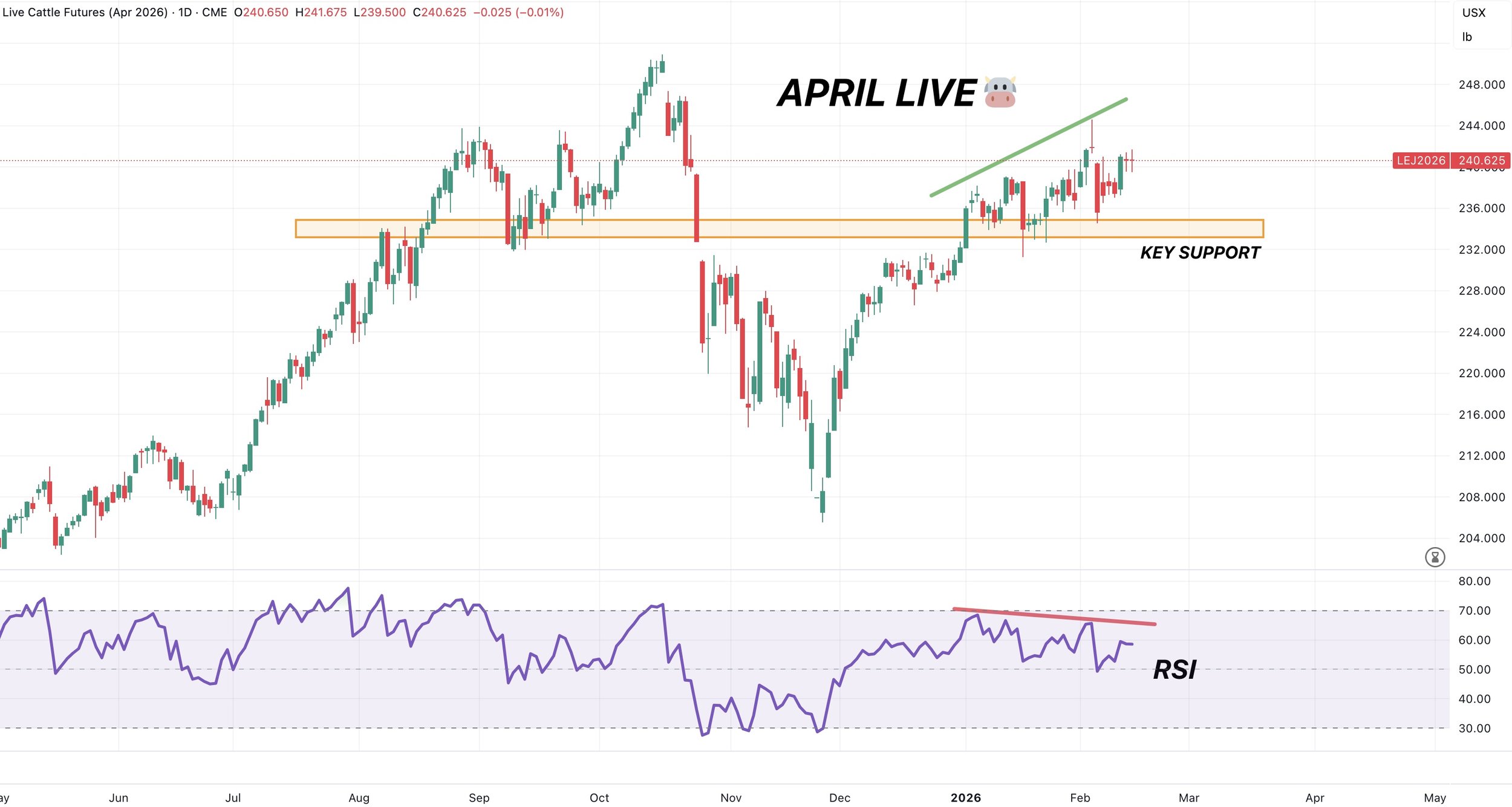 Overall I am still very cautious in cattle. I'm just not sure what could drive us past those highs. It feels like we'd need an outside catalyst to do so.
