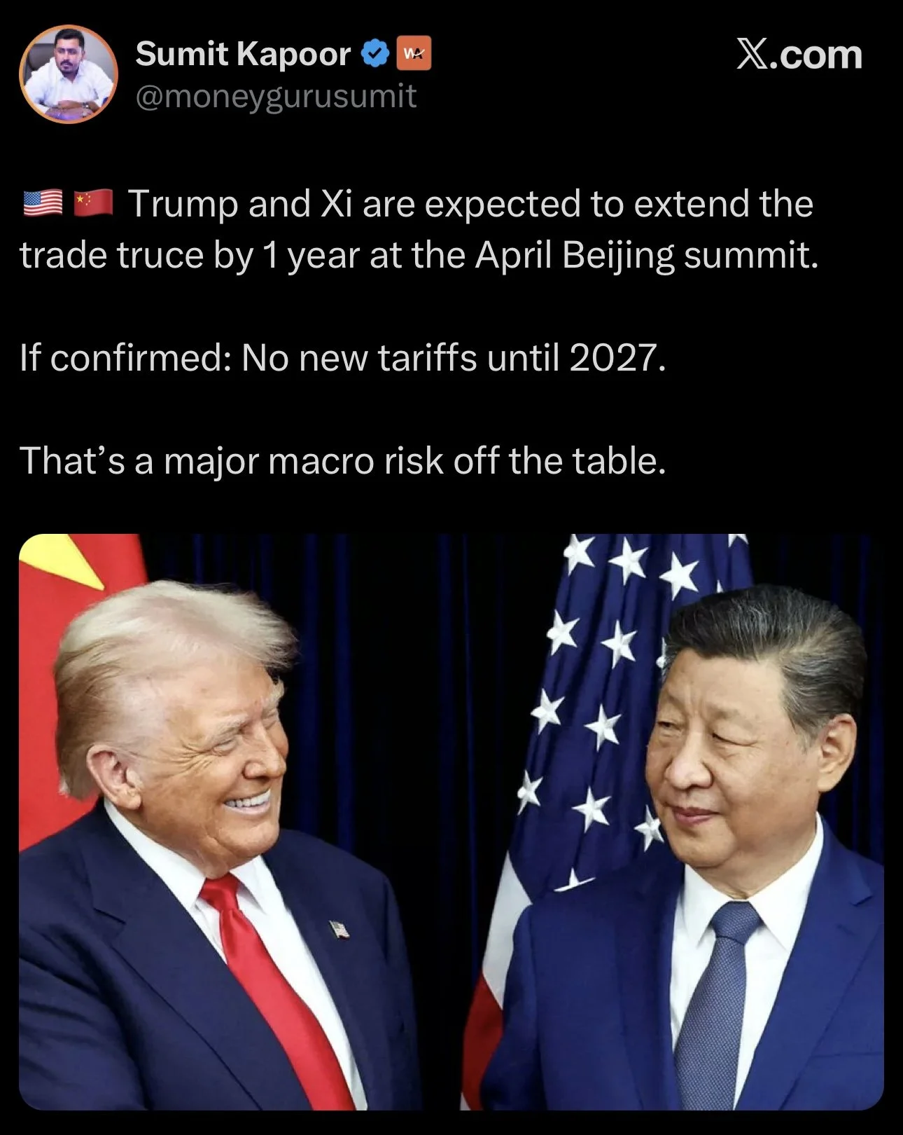 Yesterday we then received news that Trump was expected to extend his truce with China by another year when they meet in April. So this was a big part behind yesterday's strong price action.