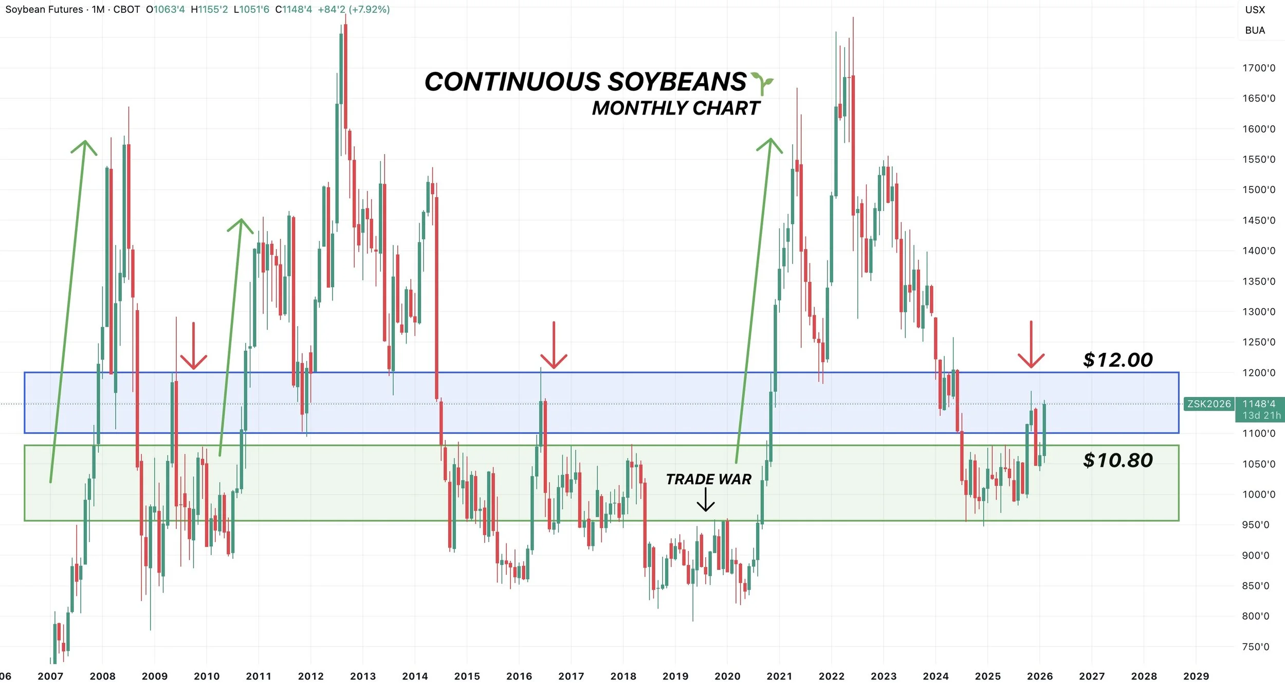 Every single time this market has broken above $10.80 (green box) it has never stopped in the $11.00's.