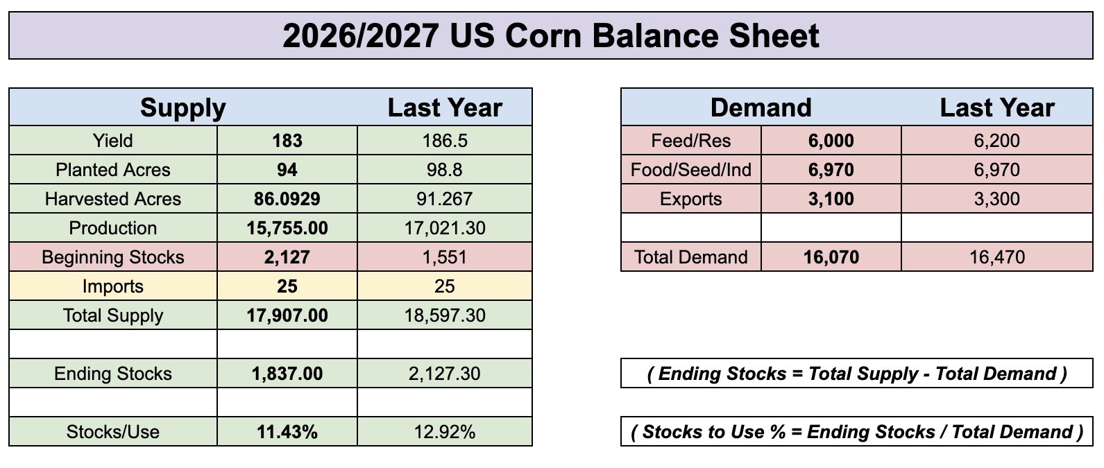 We'll dive into how this could impact the new crop balance sheet later in the corn section, but first let's look at how these numbers stack up.