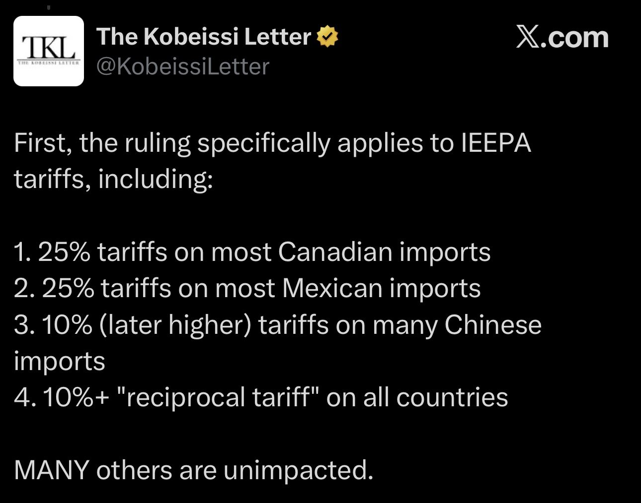 Right after the news came out this morning about the ruling, there were signs that the market did not believe that that was it for tariffs.