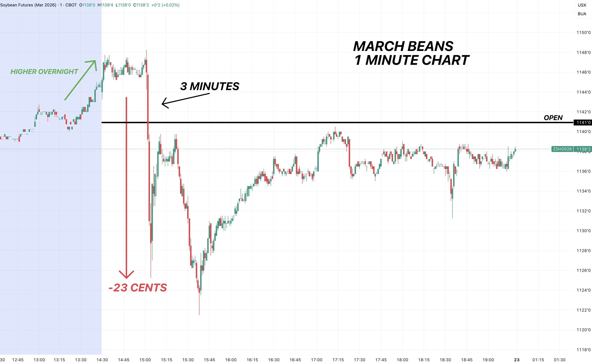 "Wait this is actually bearish because no tariffs means that China no longer has a reason to buy those soybeans they agreed to buy. Because they were only buying to make a deal with Trump. No tariffs means that Trump loses his leverage and China is no longer forced to buy our soybeans that are $1 more expensive than Brazil's."
