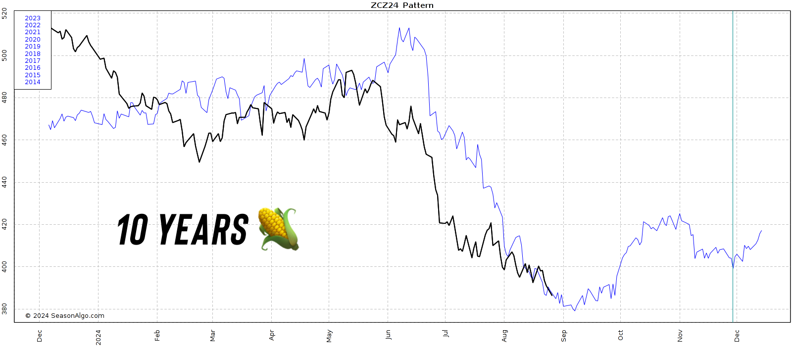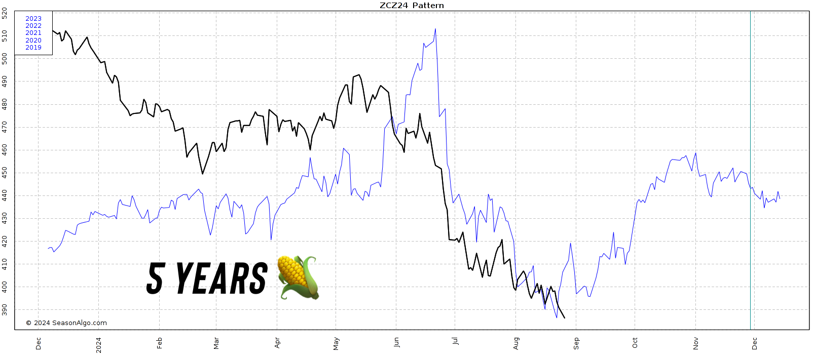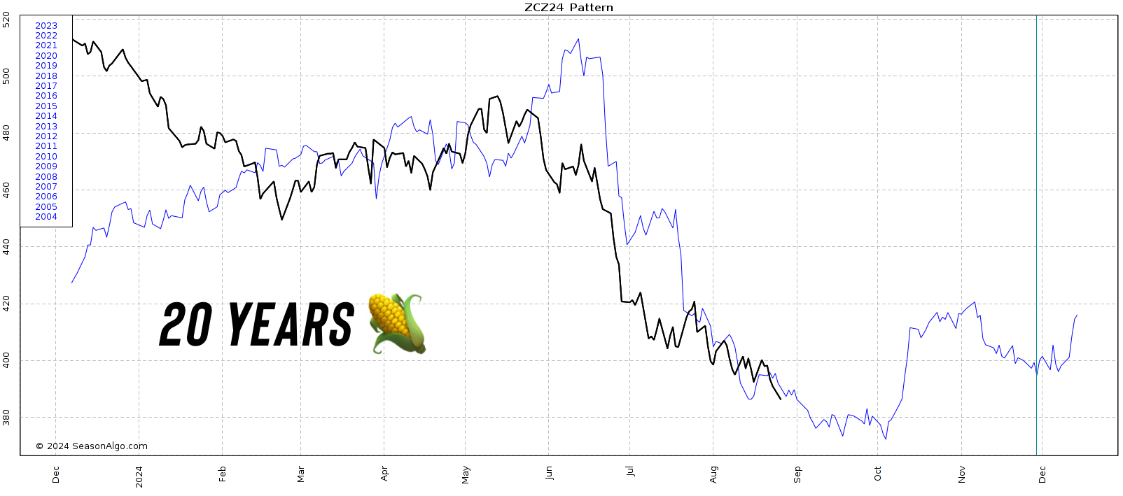When looking at seasonals, corn typically does not bottom until a good chunk of harvest is out of the way. A key date people like to use for a bottom is October 1st.