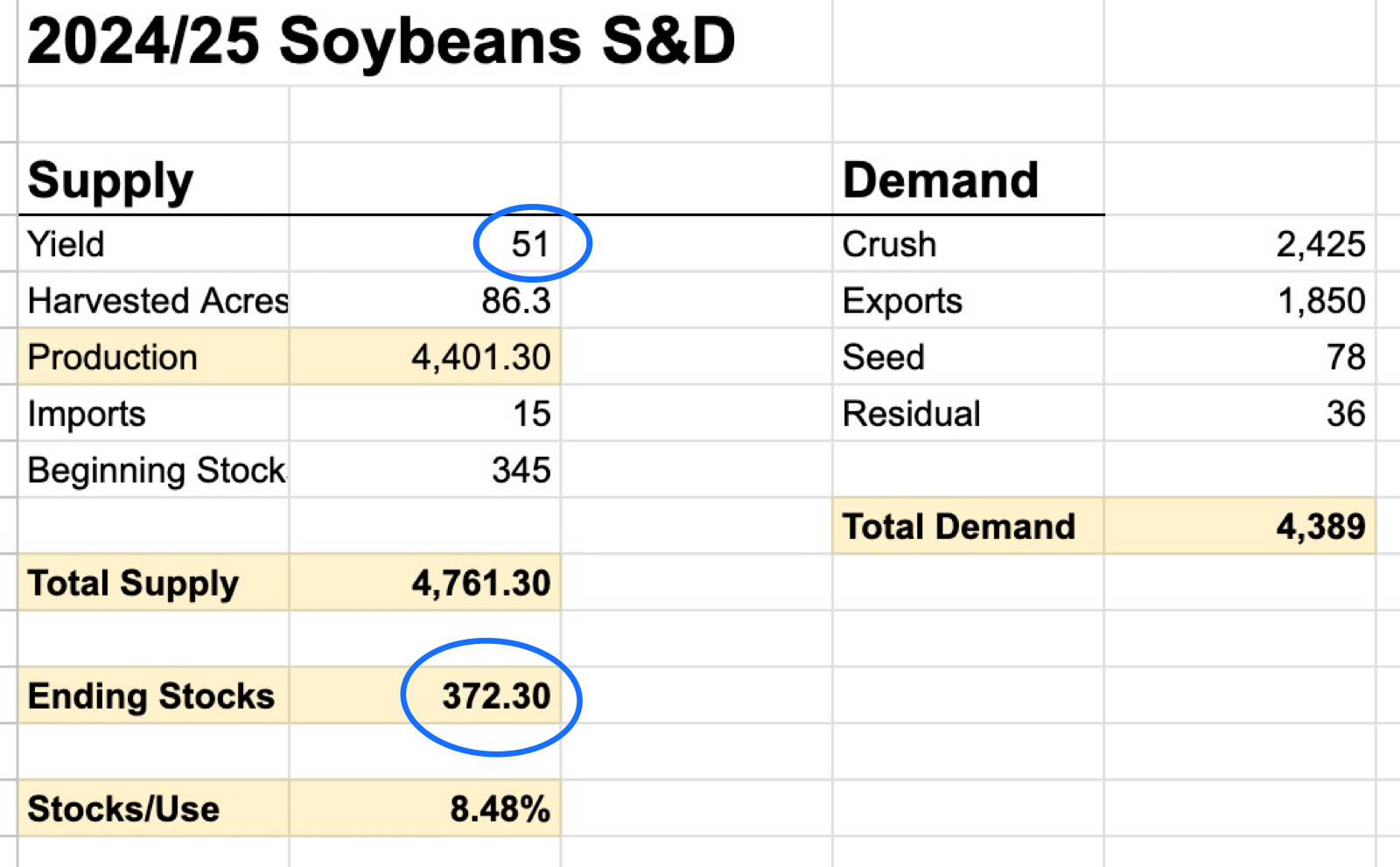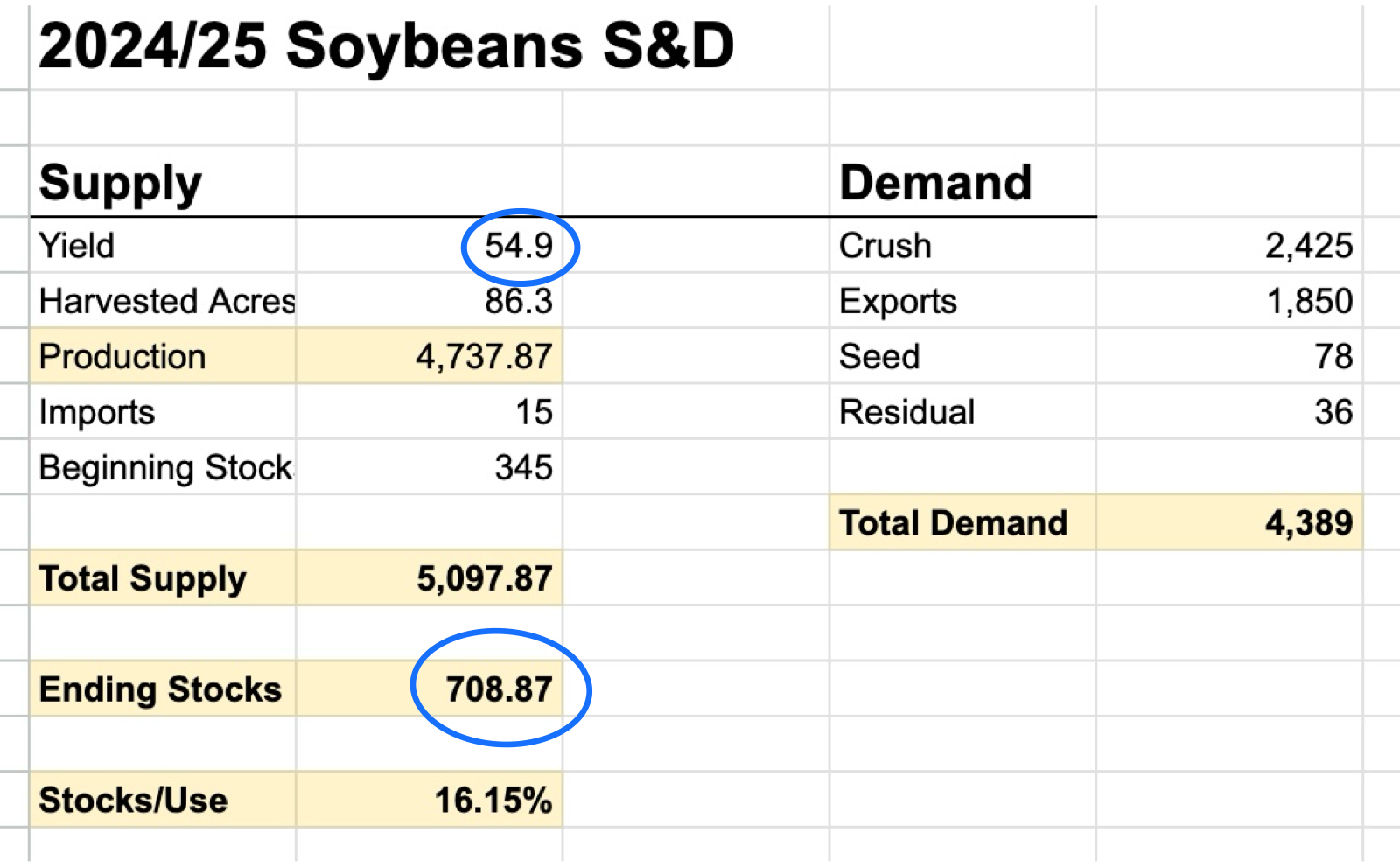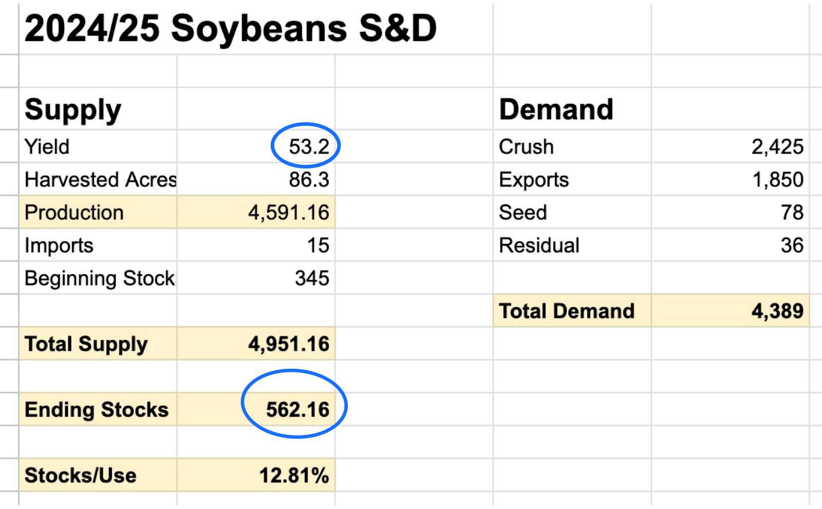USDA REPORT: BEARISH BEANS. SMALLER CORN CARRYOUT & RECORD YIELDS
