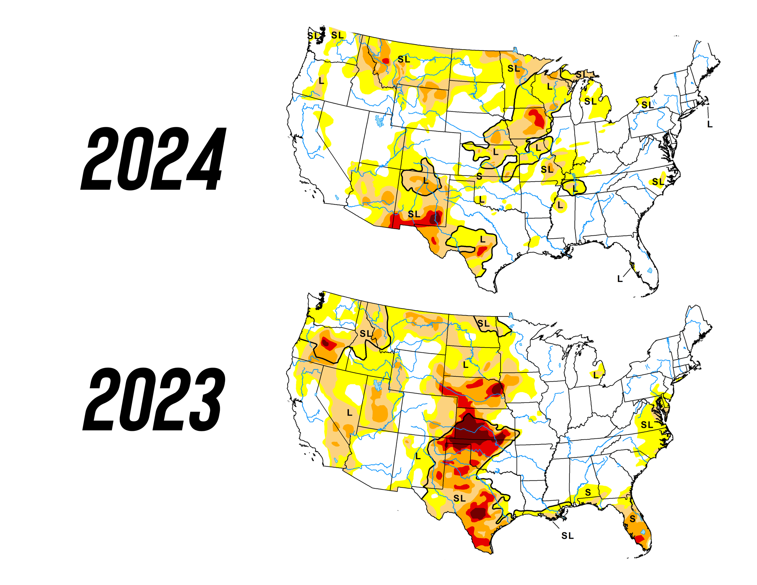 Below is two seasonal drought outlooks. The first was released 10 days ago. The second was released yesterday.