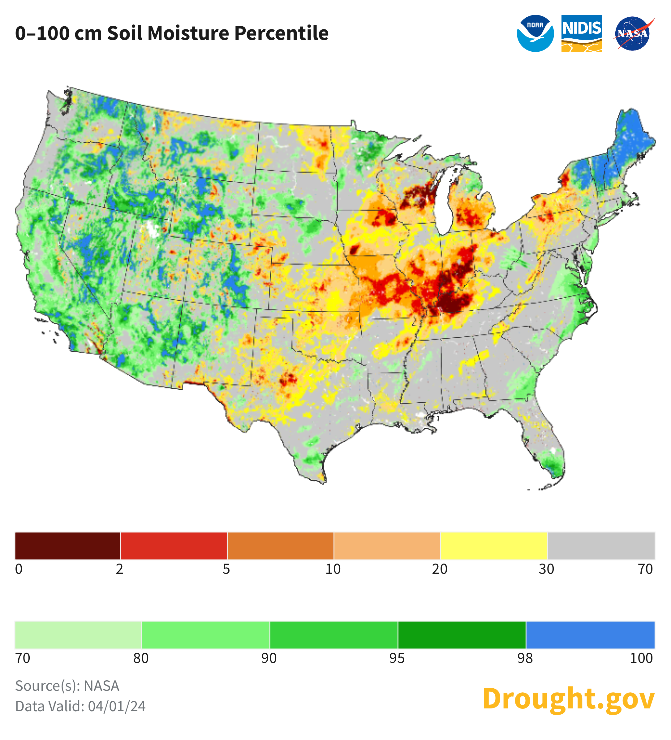 Overall US subsoil moisture is 61% adequate vs last year's 67%