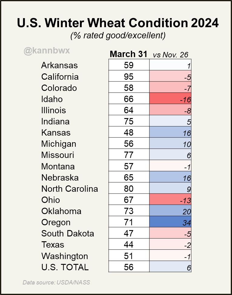 🌾 Top wheat grower Kansas is 47% vs 20% last year