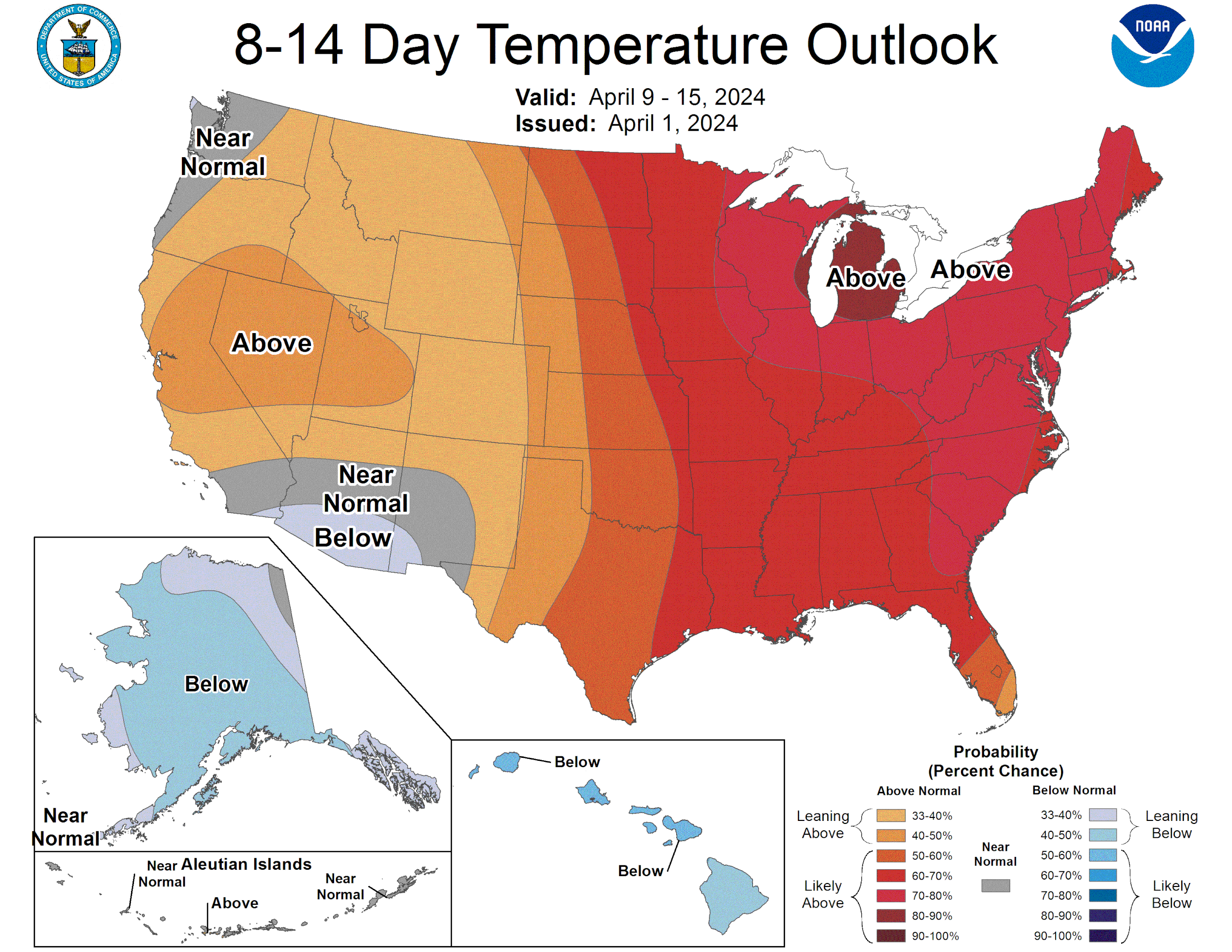 The next week will be cool and wet. But it does start to warm up with above normal temps next week.