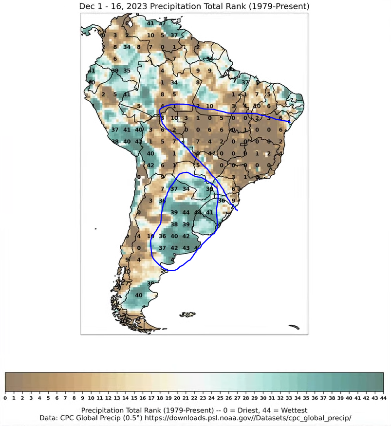 "While 2 to 4 inches of rain in central/northern Brazil sounds impressive over the next 14 days, that equates to just about 75% of normal and follows the driest October to December period since at least 1979."