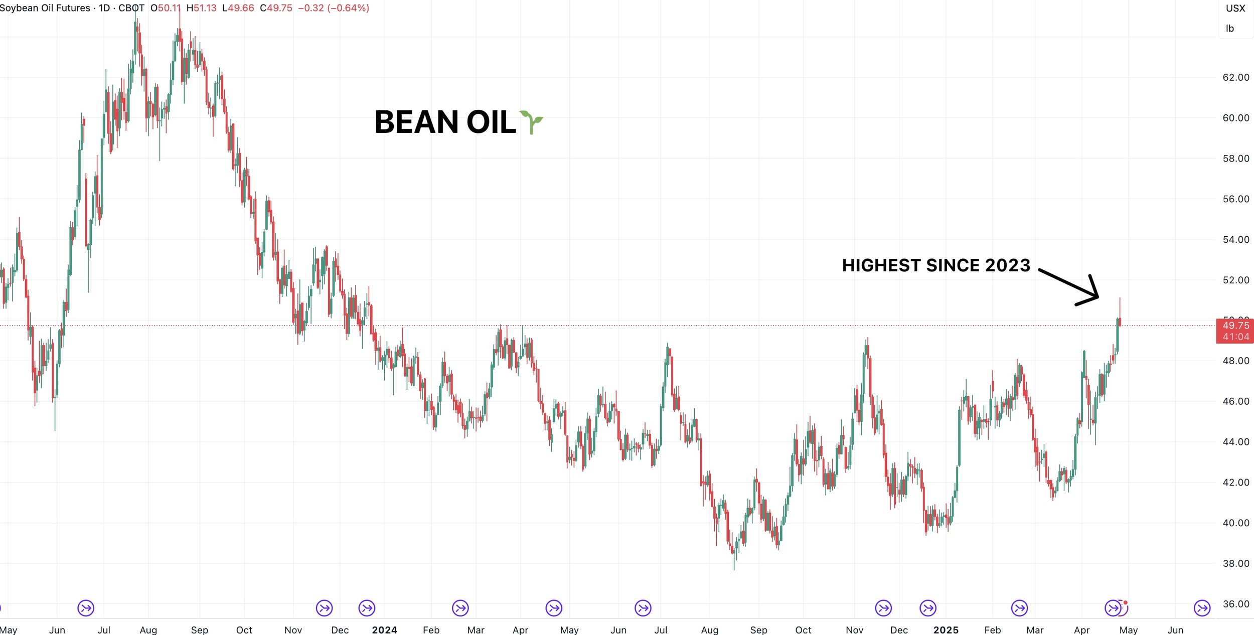 Soybeans finally broke above the 200-day MA for the first time since 2023.