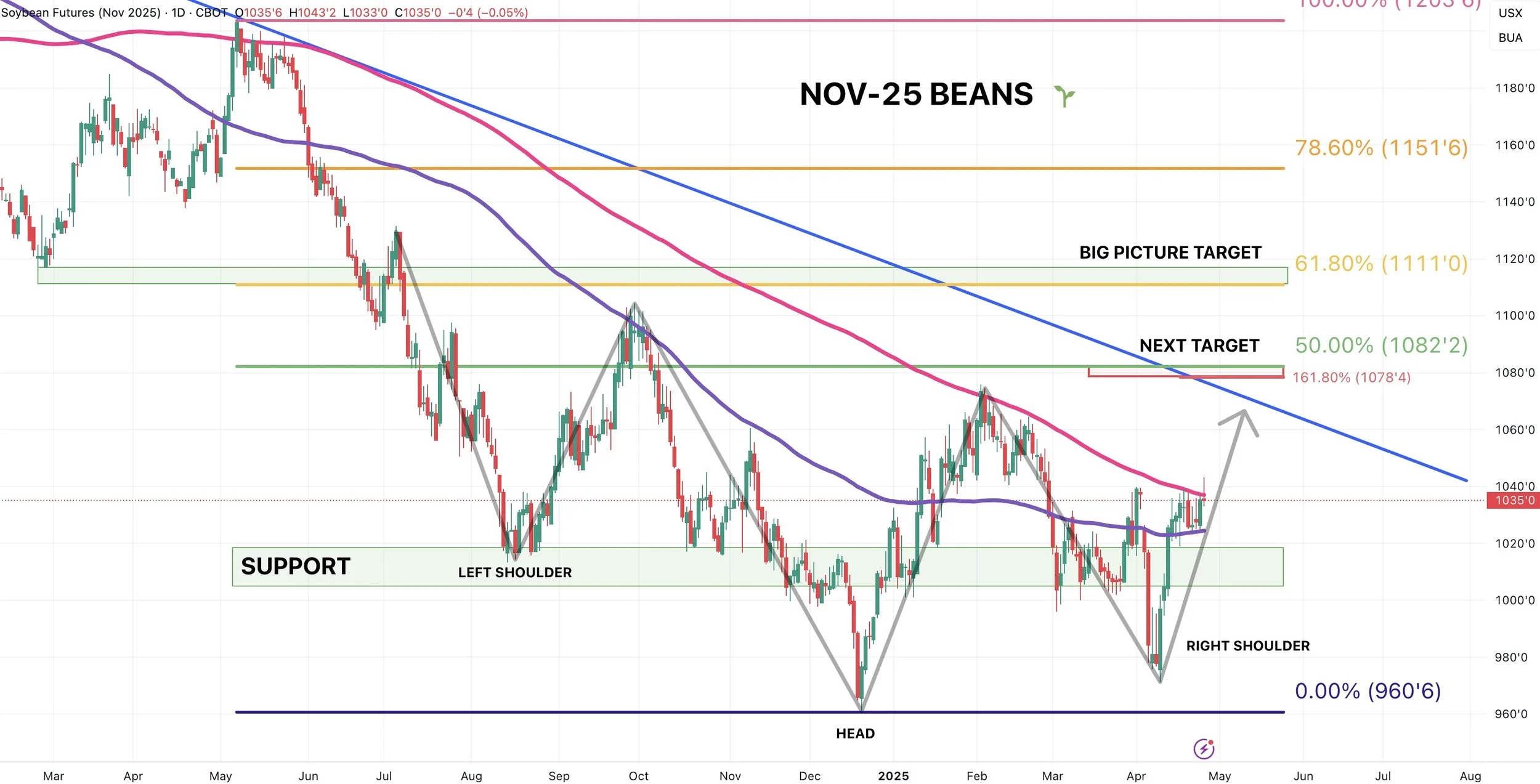 China announced they were going to be exempting some US imports from the 125% tariffs. However, the initial rumor list does not include soybeans that I know of.