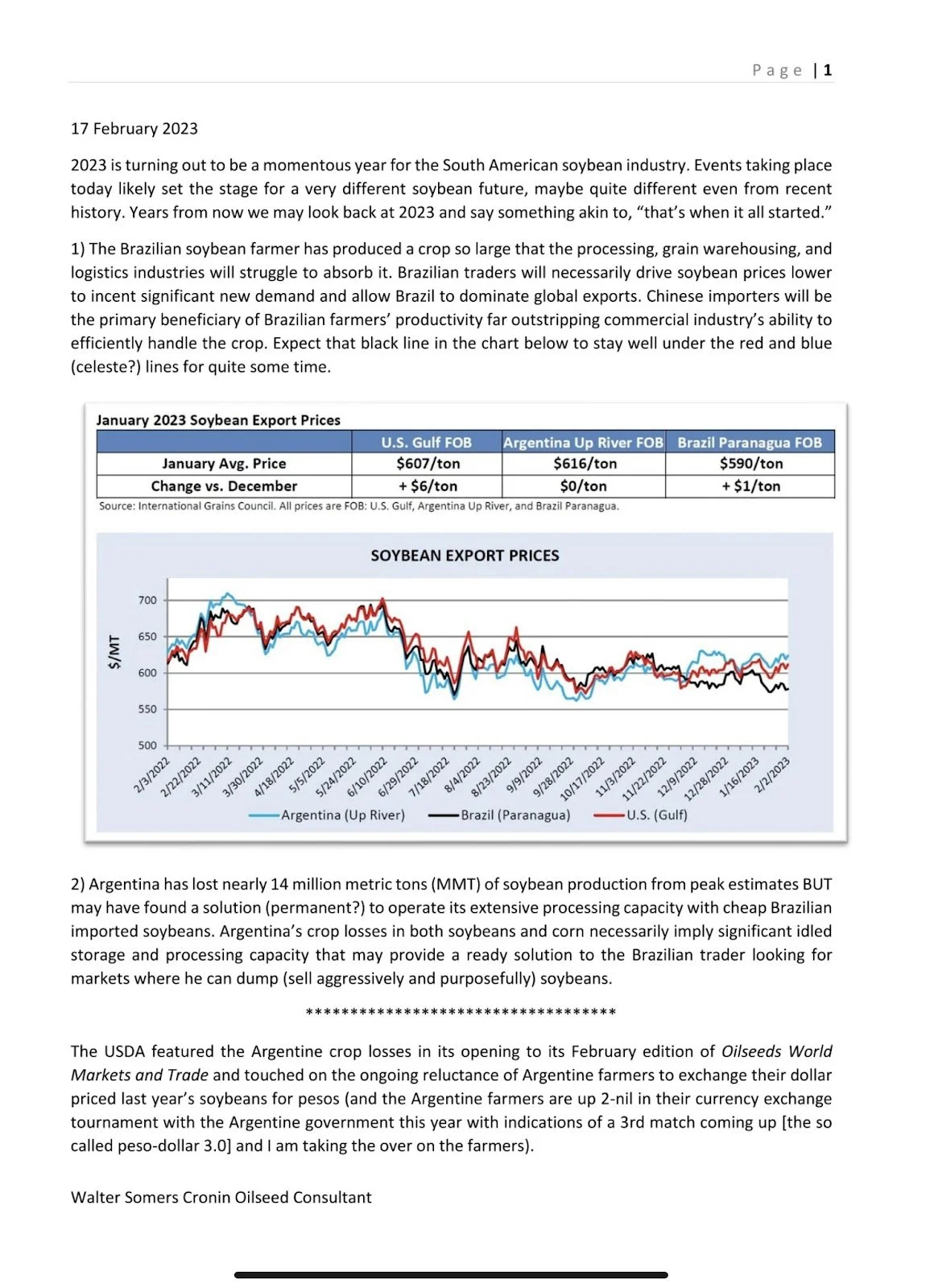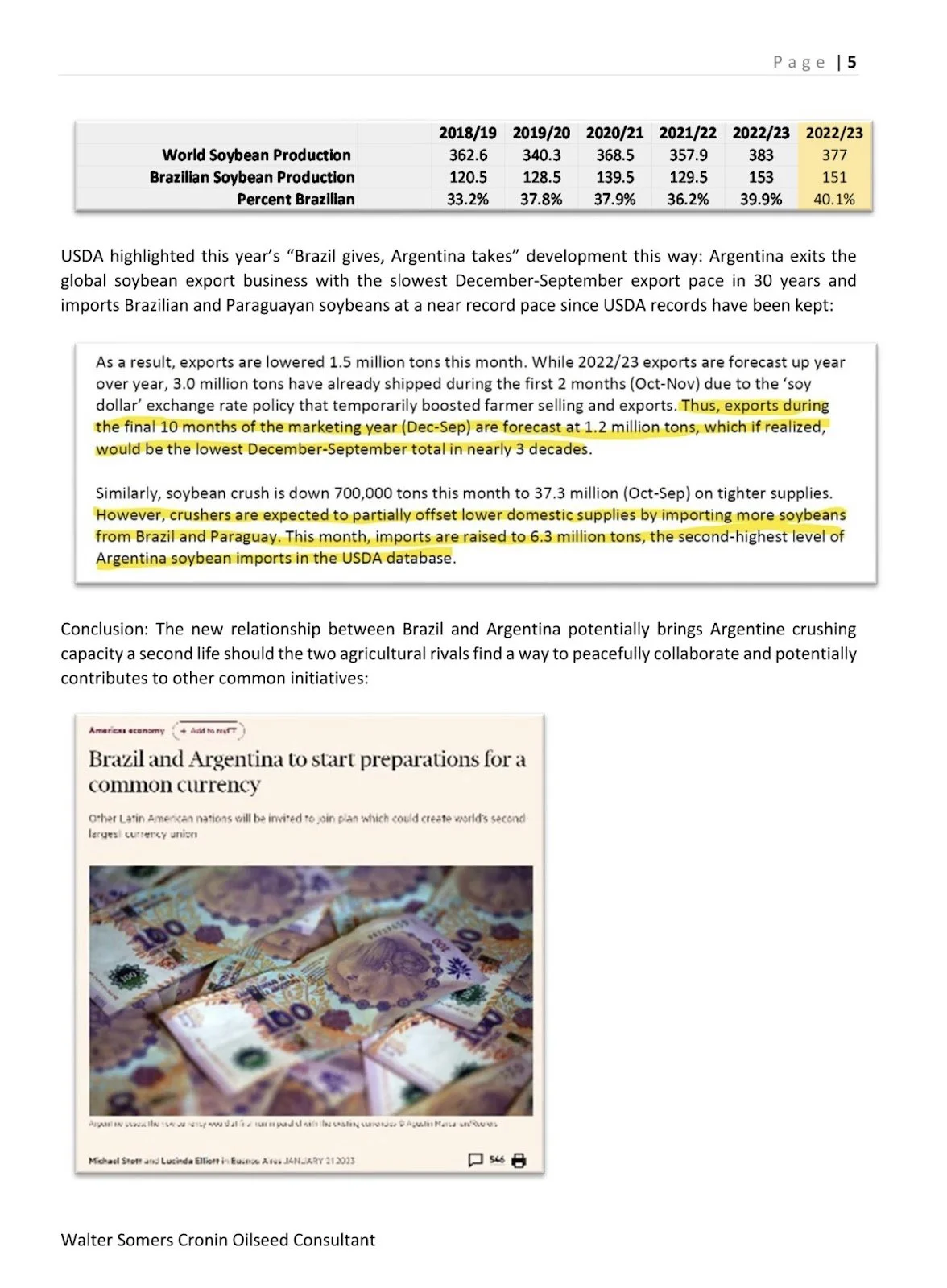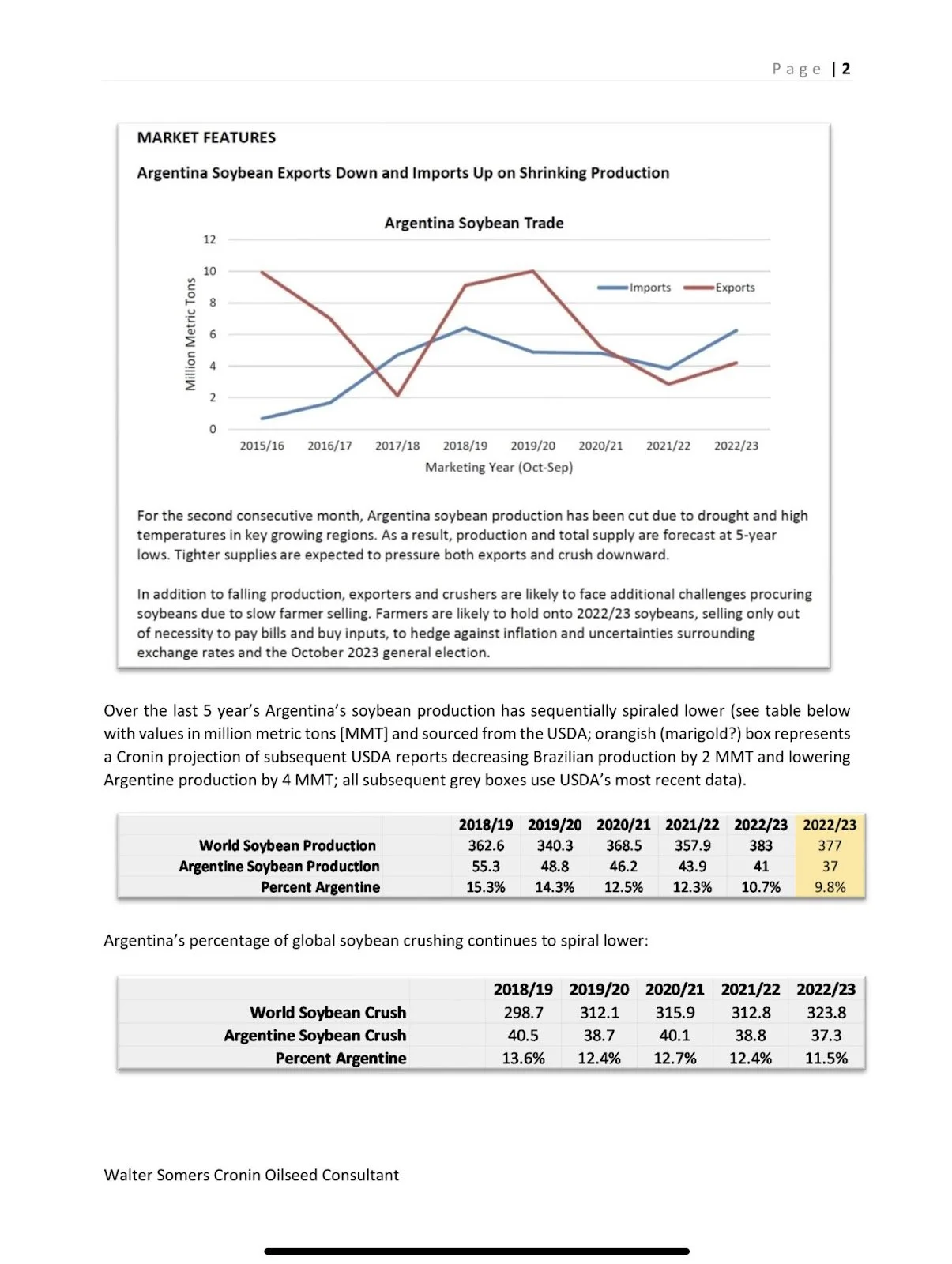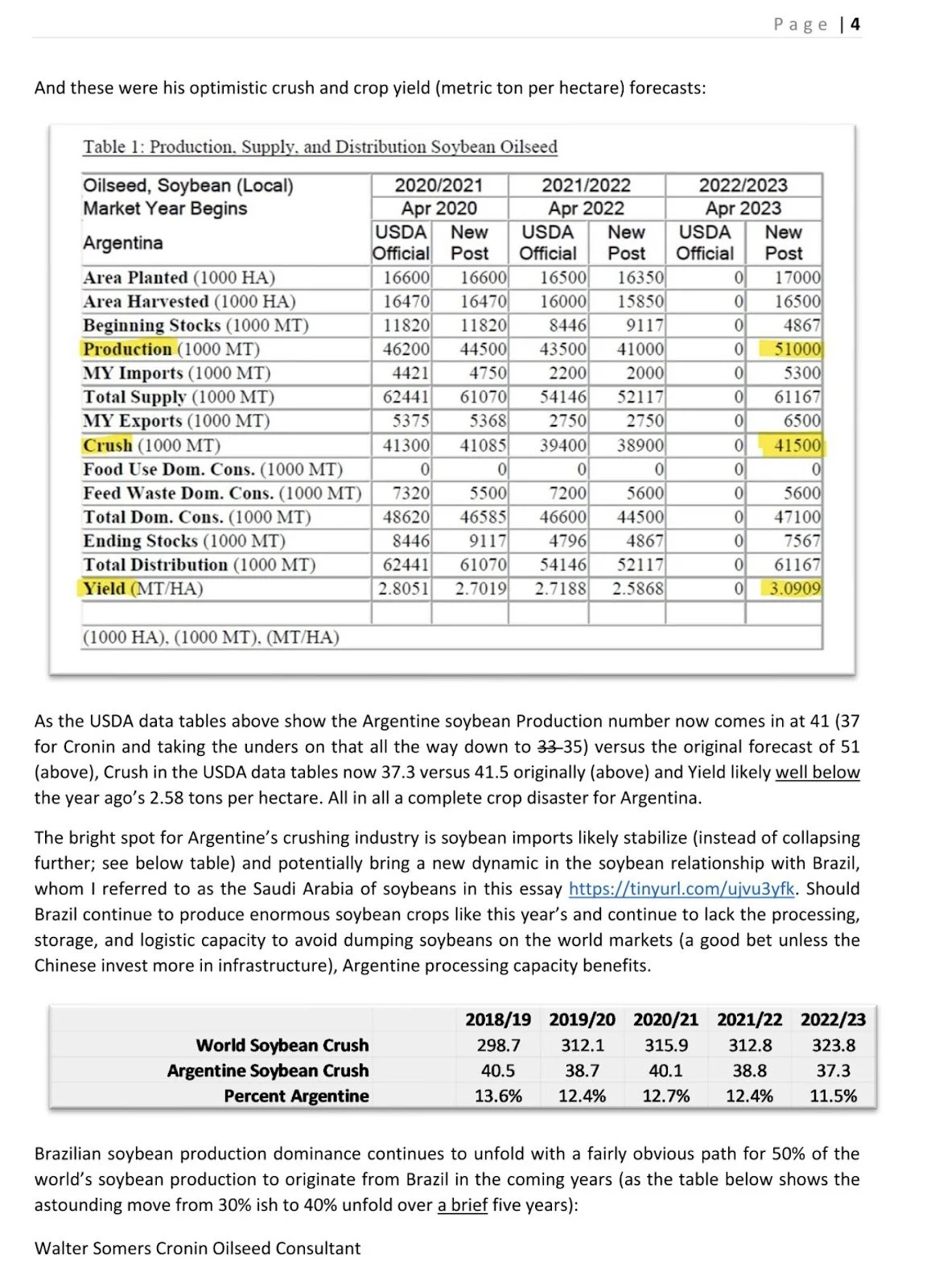 So I do think that the Argentina soybean crop just went under 30 MMT. If you combine that with Brazil, we will be down year over year, even if Brazil comes in slightly higher then it is presently estimated at. But with all of the acres for us not to have a year over year record really says something.