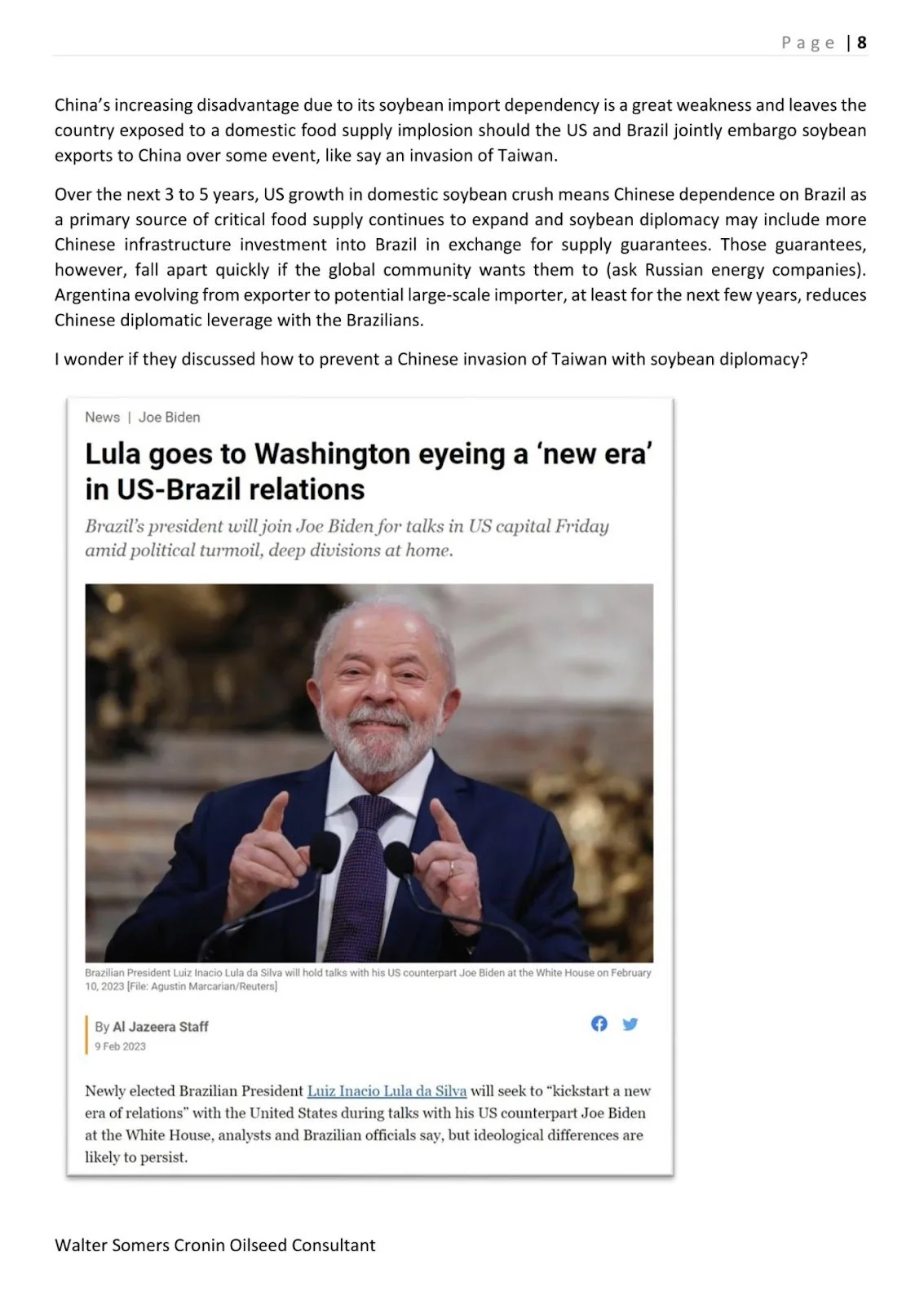 The moral of the above that I get is that China needs beans, as soybeans might be the only thing that keeps China out of Taiwan.