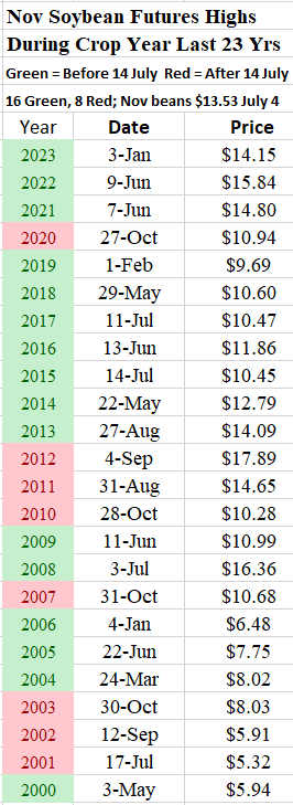 Soybean Seasonal Price Up Trend Ends July 15