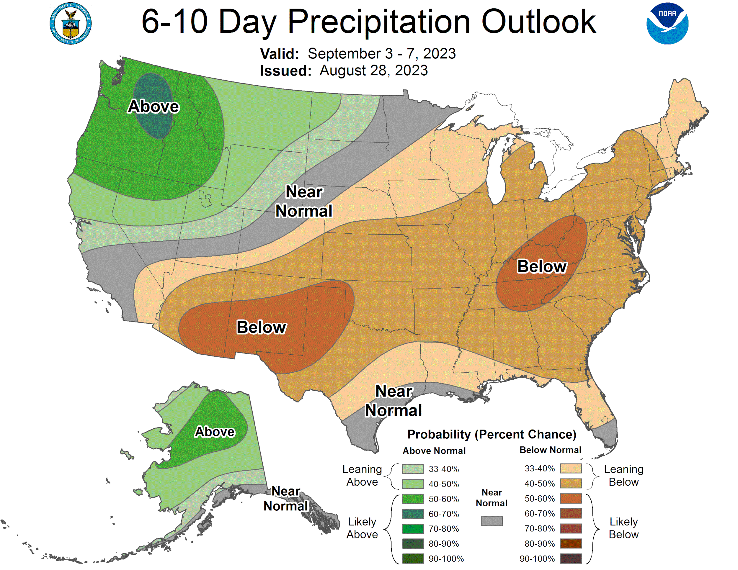 Overall, today's lower price action was no surprise. Could there be more downside? Of course. But I think the forecasts will continue to provide support in pushing us higher as we head into September, as the weather outlook is still bullish throughout at least mid-September.