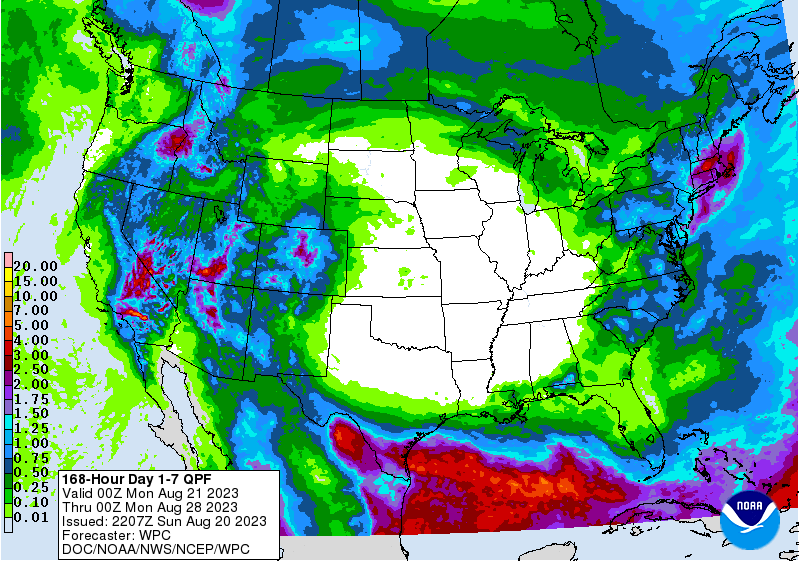 Weather maps say enough. How much damage is being done to the soybean yield? I don’t know if we have a good barometer or history to know for sure. Same goes with corn. But my guess is this isn’t adding bushels.