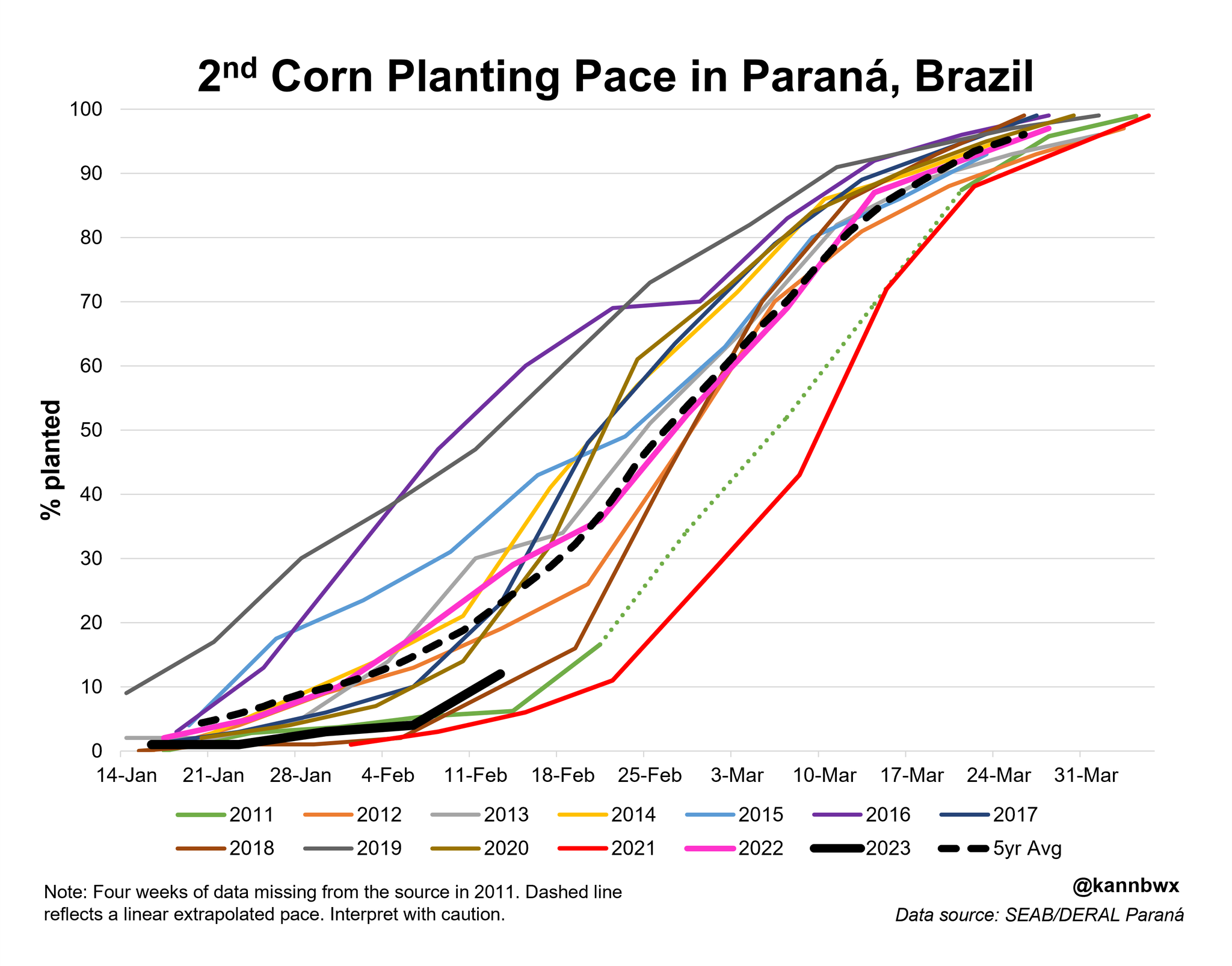 Second crop corn planting delays in Brazil will continue to be one of the bigger headlines surrounding corn. Brazil's southern state of Parana is just 12% planted vs 28% last year and 23% on average. As you can see from the chart below its one of the slowest years we've seen.