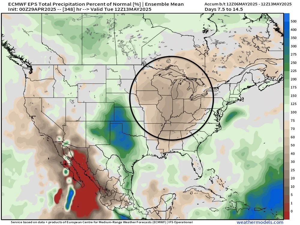 Dry across all of the eastern corn belt which should result in this crop getting in fast and will continue to somewhat keep a lid on prices momentarily.