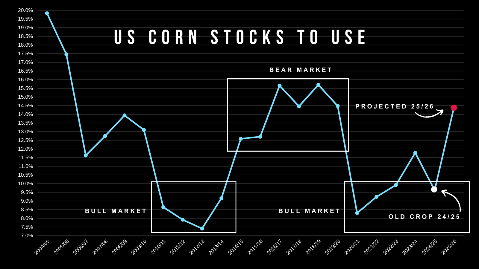 USDA TOMORROW. LONG TERM PATH FOR SUB 10% CORN STOCKS TO USE?