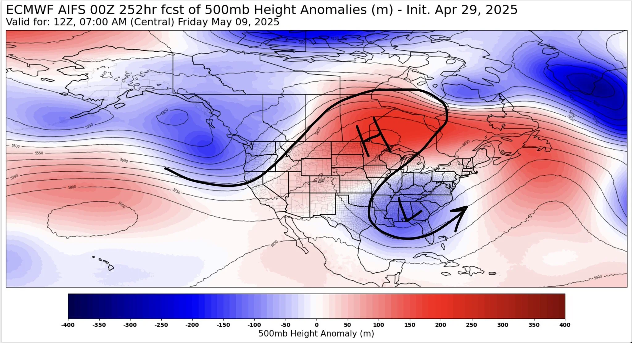 "Several models coming back together on an eastern US high-over-low block leading to a longer stretch of drier weather from Midwest/Great Lakes/Miss Valley through the Ohio Valley and Mid South.