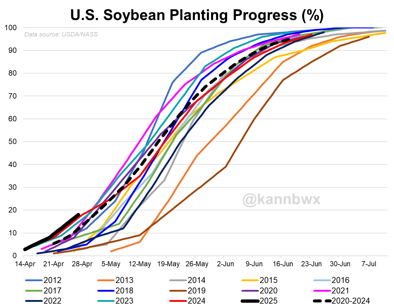 Crops should be rapidly planted during that time. Major concerns in southern plains for flooding next 2 weeks though."