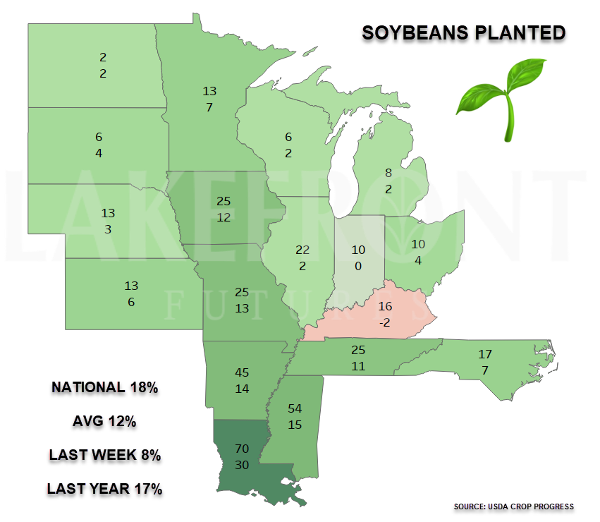 Corn might have seen some extra pressure due to the thought process that fast planting will steal more acres away from soybeans. But the last few years more and more growers have been opting to plant beans earlier or before corn. So I don’t think this is an entirely true argument.