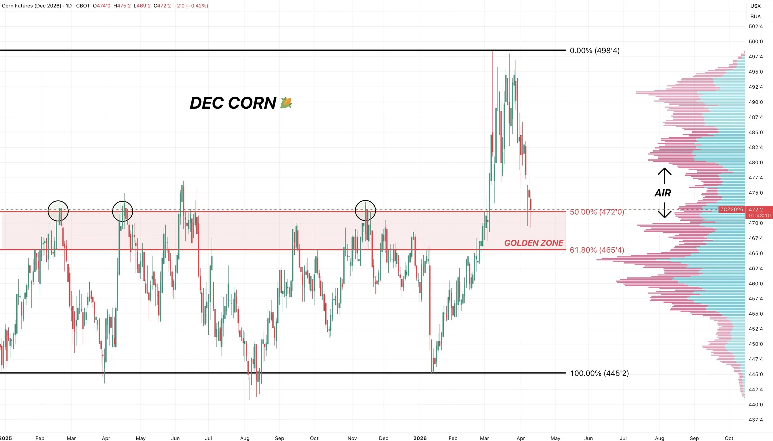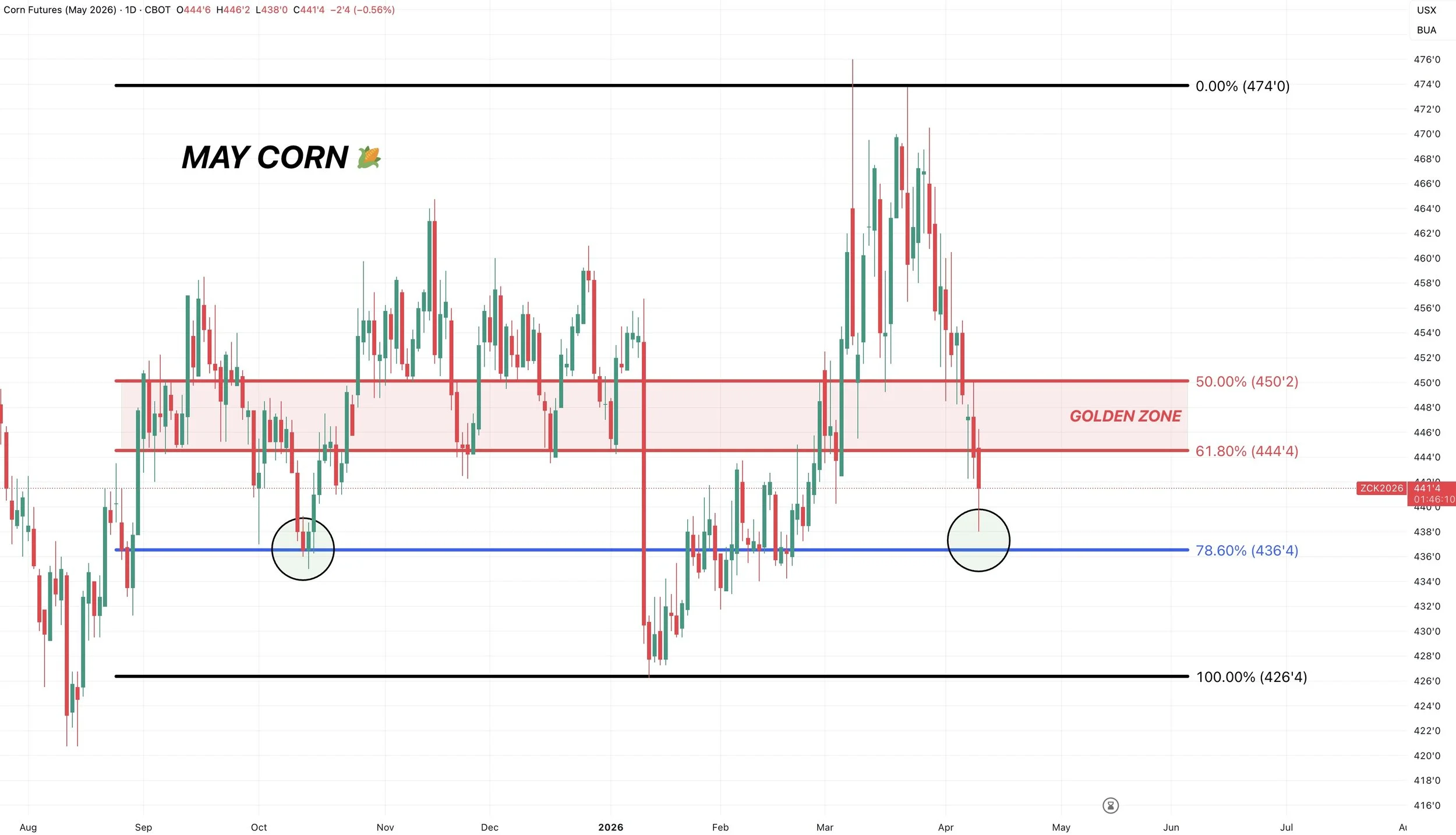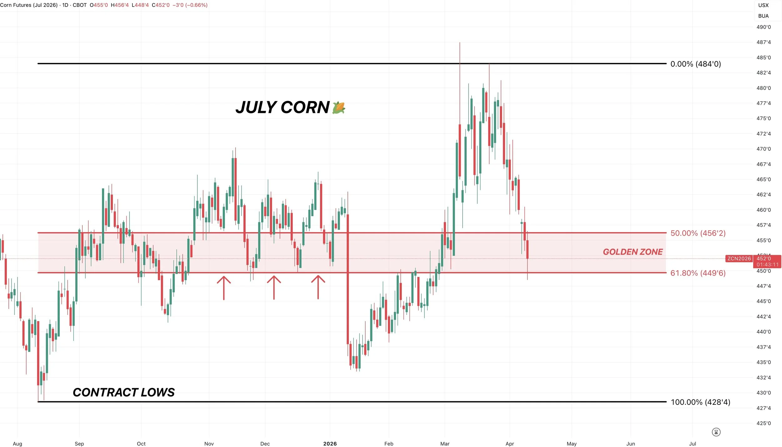 If you take the recent highs down to contract lows, we are right at the 61.8% level.