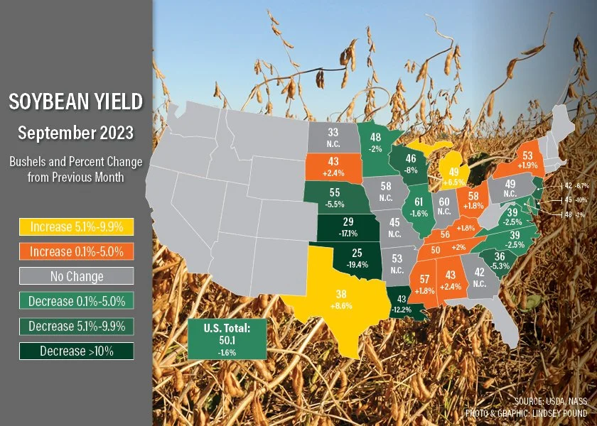 There are some producers who are saying yield is 5-10% less than it was a few weeks ago. If we take the USDA's 50 bpa yield and knock 5% off of it, we get 47.5 bpa. Soybeans can’t afford to lose another 2 to 4 bushels.