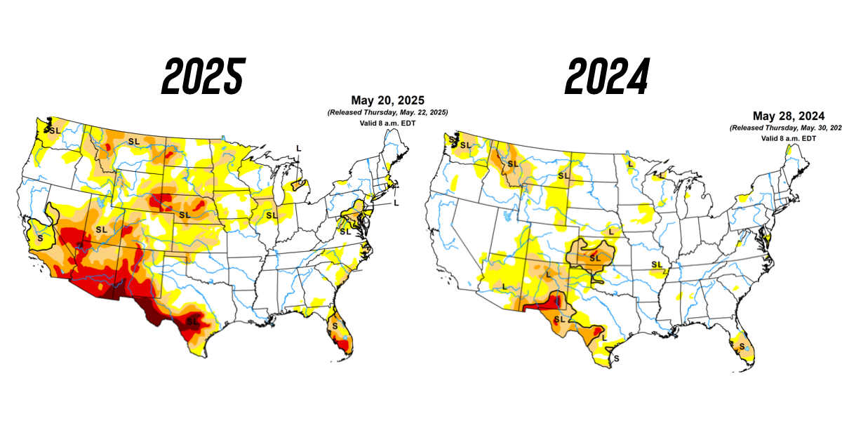 2025 is a lot drier in comparison. So obviously more concern for drought to progress.