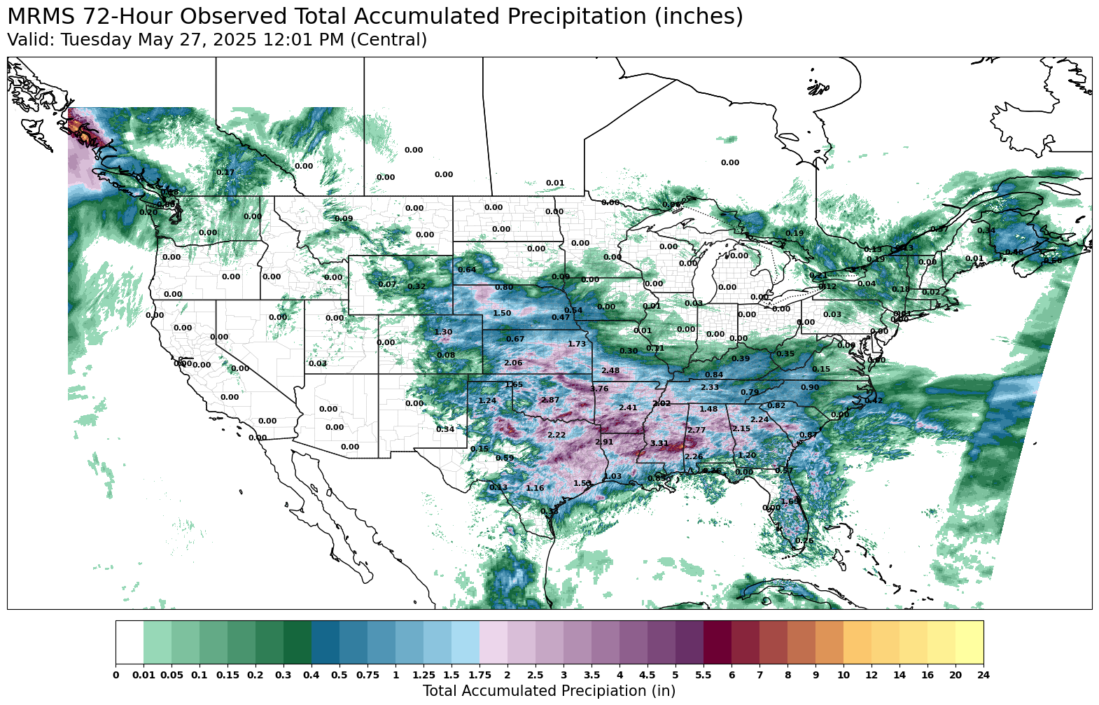 The corn market followed the wheat market lower. Dec-25 corn fell a lot harder than July-25 corn today. It feels like the downside move was led by weather shifting a little friendly here to begin June.