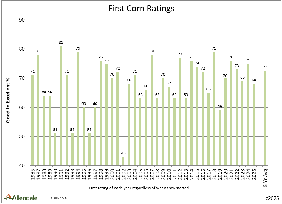 Before we get into anything else, we had our first crop conditions out today for corn.